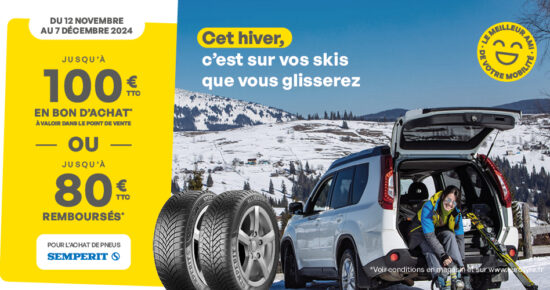 Du 17 novembre au 13 décembre, jusqu’à 100€ offerts pour l’achat de pneus de la marque Semperit et un séjour […]