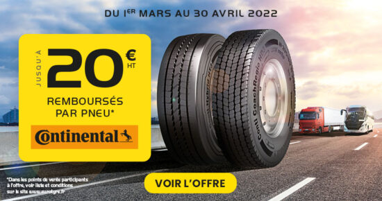 Du 1er Mars au 30 Avril 2022 pour l’achat de pneumatiques Poids Lourd neufs été Continental, bénéficiez d’un remboursement jusqu’à […]